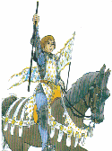ついでジャンヌは、シャルルをはげましてランスの町へ行き、大聖堂で盛大な戴冠式(初めて王冠をかぶる式)を成功させました。当時、ランス大聖堂で戴冠式を行わなければ正式なフランス王とは認められなかったからです。正式に国王シャルル7世となった王太子を見て、今までイギリス側についていた貴族達も次々シャルルの側につき始めました。  |